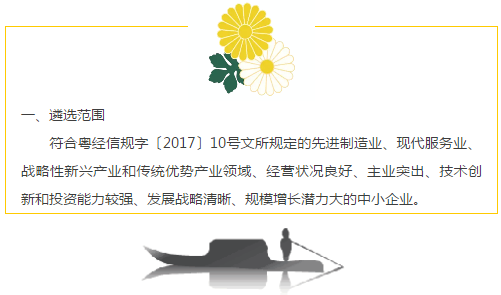 根据《广东省经济和信息化委印发高成长中小企业遴选办法的通知》(粤经信规字〔2017〕10号)要求,2017年我委将在全省范围内遴选一批成长性好、竞争力强、技术优势明显、具有较强自主创新能力和发展潜力、管理营销模式新颖的高成长中小企业。现将有关遴选事项通知如下:
