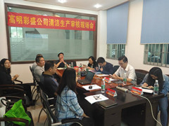 2018年11月16日,佛山市清洁生产协会会同高明区环保局,组织评审专家到彩盛公司召开清洁生产审核验收现场会,评审专家、和环保局领导听取了彩盛公司关于清洁生产审核工作的情况汇报,考察了企业生产现场,查阅了相关资料,宣布彩盛公司通过清洁生产验收